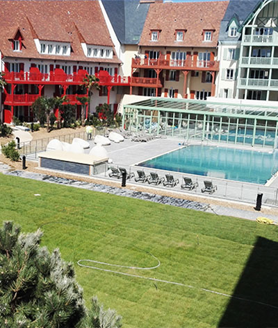 Réalisation d’un hôtel Premium pour le compte de Pierre & Vacances sur la presqu’île de la Touques sur la commune de Deauville. Charpente traditionnelle avec fermes cintrées. Chantier HQE.
